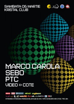 Sâmbătă, 6 martie 2010, Marco Carola este prezent la platane în Kristal Glam Club din Bucureşti.