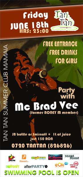 Vineri, 18 iunie 2010, Tan Tan Summer Club din Mamaia ne invită la disctraţie alături de Mc Brad Vee.