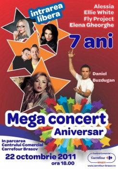 Sâmbătă, 22 octombrie 2011, de la ora 18:00, Carrefour Braşov sărbătoreşte 7 ani şi organizează un mega concert aniversar în parcarea Centrului Comercial.