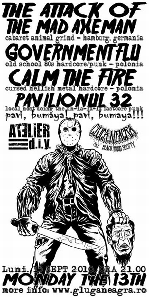 La Monday The 13th vor concerta trupele The Attack Of The Mad Axeman, Government Flu, Calm The Fire şi Pavilionul 32.