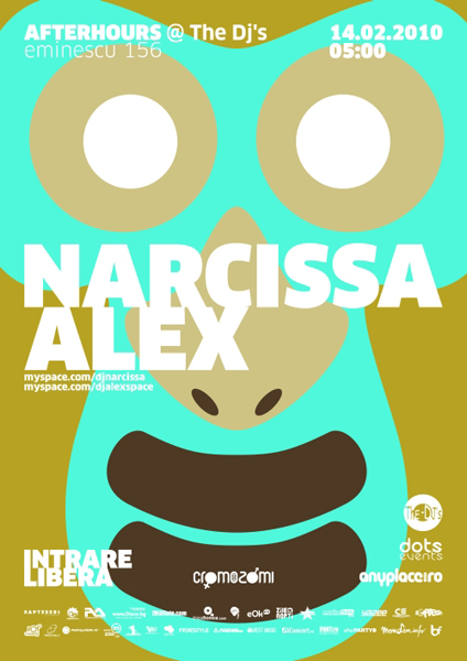 Duminică, 14 februarie 2010, ora 5:00, Narcissa & Alex vor mixa la afterhours party în Club The DJ’s din Bucureşti.