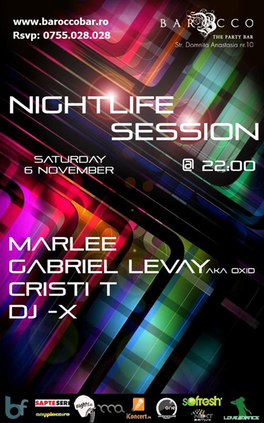 Sâmbătă, 6 noiembrie 2010, ora 22:00, la Barocco Bar din Bucureşti are loc petrecerea „Nightlife Session„.