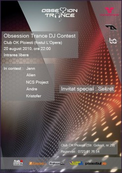 Vineri, 20 august 2010, ora 22:00, în Club OK din Ploieşti are loc „Obsession Trance DJ Contest„.