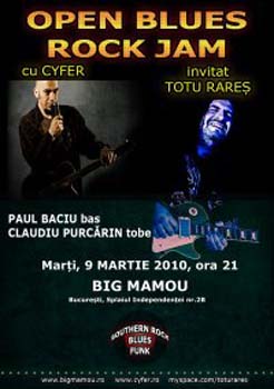 Marţi, 9 martie 2010, ora 21:00, la clubul Big Mamou din Bucureşti are loc concertul „Open Blues Rock Jam„.