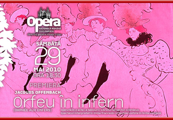 Sâmbătă, 29 mai 2010, ora 18:30, la Opera Națională din Cluj-Napoca are loc opereta în 2 acte „Orfeu în infern„.