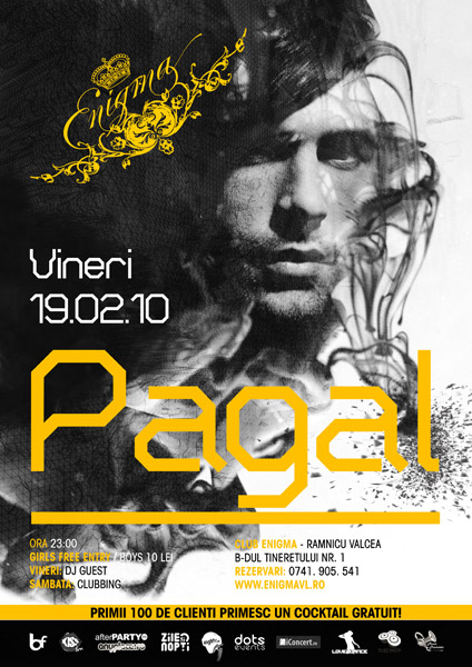 Vineri, 19 februarie 2010, ora 23:00, Pagal va mixa in Club Enigma din Ramnicu Valcea.
