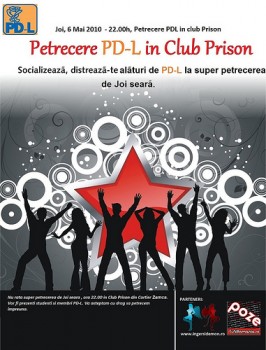 Joi, 6 mai 2010, ora 22:00, în Club Prison din Suceava are loc petrecerea PD-L.