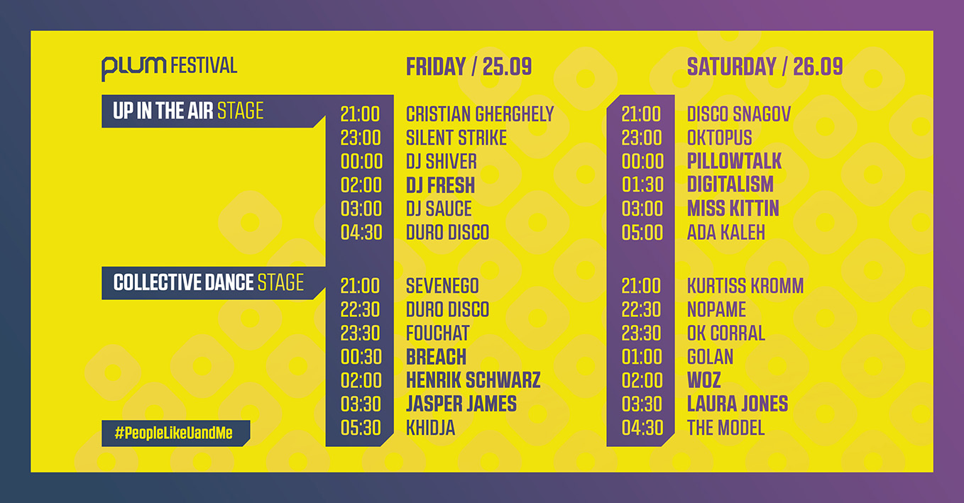 Locaţia nu a fost aleasă deloc întâmplător, spaţiul semi-industrial al fostei fabrici subliniind perfect esenţa PLUM – un festival special pentru #PeopleLikeUandMe, oameni moderni şi optimişti, polarizaţi în jurul ideii de reactivare a spaţiilor urbane uitate prin intermediul party-ului perfect în care line-up, publicul şi ADN-ul locaţiei devin principala atracţie a experienţei.