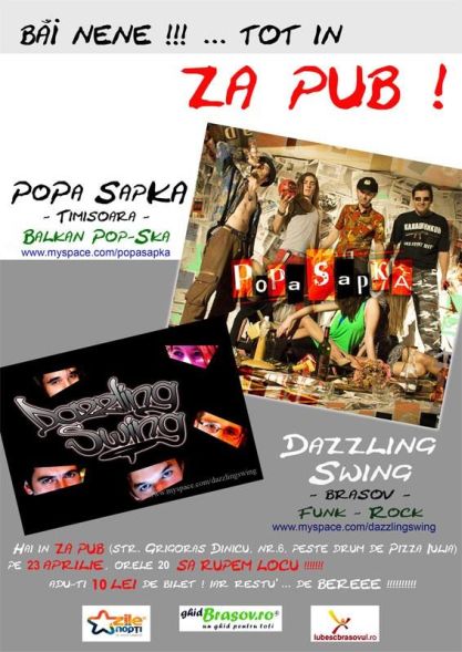 Vineri, 23 aprilie 2010, ora 20:00, trupele Popa Sapka şi Dazzling Swing vor concerta la Za Pub din Timişoara.
