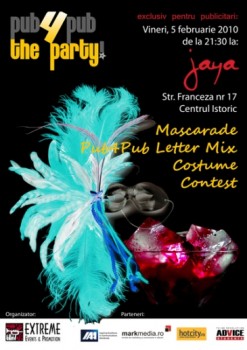 Vineri, 5 februarie 2010, ora 21:30, Jaya Mansion din Bucureşti ne invită la balul mascat „Pub4Pub The Party„.