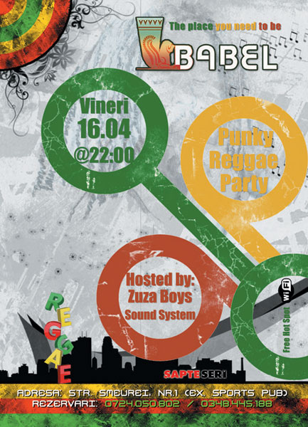 Vineri, 16 aprilie 2010, ora 22:00, la Babel Pub din Piteşti are loc petrecerea „Punky Reggae Party” cu Zuza Boys.