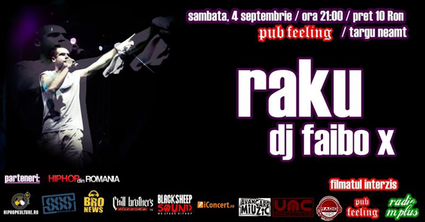 Sâmbătă, 4 septembrie 2010, ora 21:00, Pub Feeling din Târgu Neamţ ne invită la ditracţie alături Raku & DJ Faibo X.