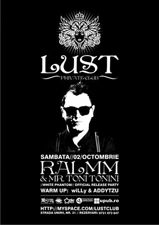 Sâmbătă, 2 octombrie 2010, Ralmm & Mr Toni Tonini ne invită la petrecere în Lust Club din Craiova.