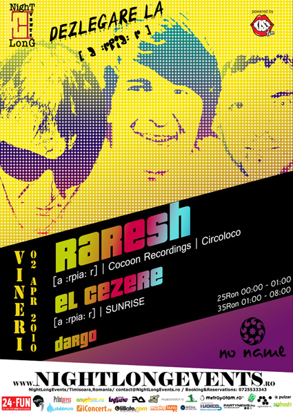 Vineri, 2 aprilie 2010, ora 00:00, Raresh, El Cezere & Dargo vor mixa în Club No Name din Timişoara.