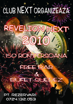 Joi, 31 decembrie 2009, in Club Next din Constanta are loc petrecerea de Revelion.