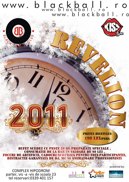 Vineri, 31 decembrie 2010, la Black Ball Club din Brăila are loc petrecerea de Revelion 2011.