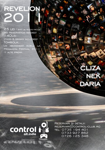 Vineri, 31 decembrie 2010, ora 21:00, la Club Control din Bucureşti are loc petrecerea cu ocazia Revelionului 2011.