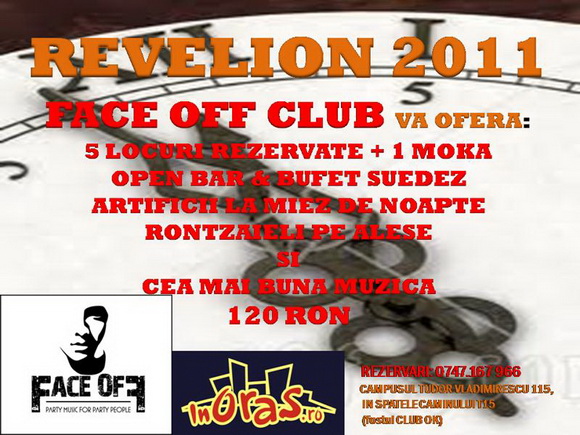 Vineri, 31 decembrie 2010, la Face Off Club din Iaşi are loc petrecerea cu ocazia Revelionului 2010-2011.