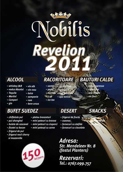 Vineri, 31 decembrie 2010, Nobilis Pub din Bucureşti ne invită la petrecerea de Revelion 2011.