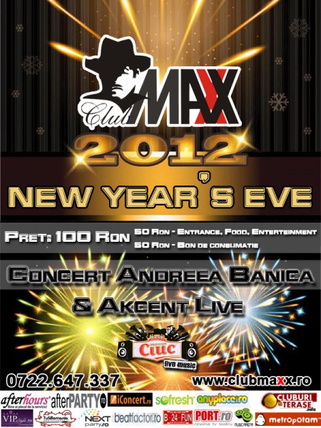 Sâmbătă, 31 decembrie 2011, Club Maxx din Bucureşti vă invită la petrecerea de Revelion 2012.