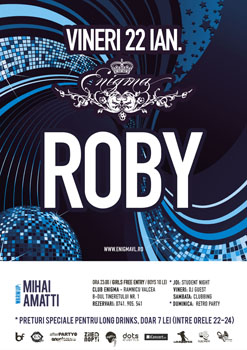 Vineri, 22 ianuarie 2010, ora 23:00, Roby va mixa in Club Enigma din Ramnicu Valcea.