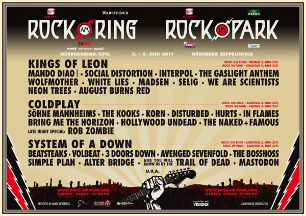 Cine va cânta şi când? Conform informaţiilor de până acum, 3 iunie, prima zi a festivalului va fi ziua celor de la Coldplay, The Kooks, Korn, Disturbed, Hurts, In Flames, Bring me the Horizon, Hollywood undead, iar ca invitat special, Rob Zombie. A doua zi, 4 iunie, festivalul va continua cu Mastodon, Alter Bridge, Simple Plan, Avenged Sevenfold, Volbeat, 3 Doors Down, System of a Down. Iar ultima zi a festivalului îi va aduce pe cei de la White Lies, Selig, The Gaslight Anthem, Wolfmother, Interpol, Social Distortion, Mando Diao şi Kings of Leon.