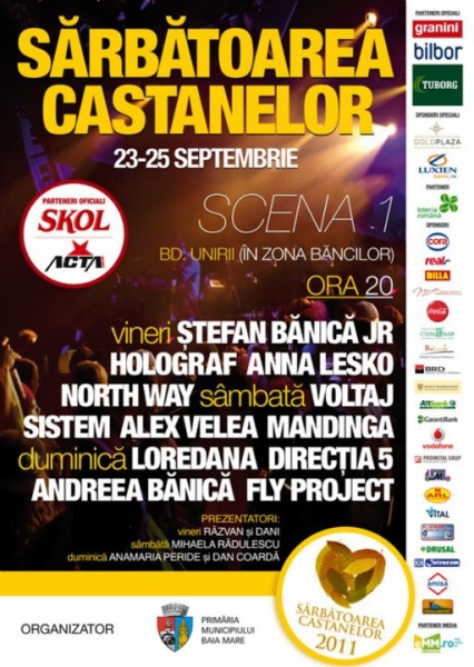 În weekendul 23-25 septembrie 2011 la Baia Mare va avea loc Sărbătoarea Castanelor 2011. Vor fi trei zile şi trei nopţi de spectacole, două scene şi mulţi invitaţi pe scenă.
