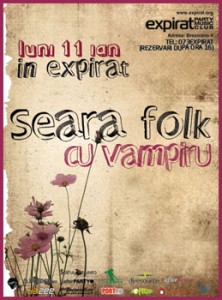 Luni, 11 ianuarie 2010, ora 21:00, Vampiru’ va concerta in cadrulSerile Folk cu Vampiru in Club Expirat din Bucuresti.