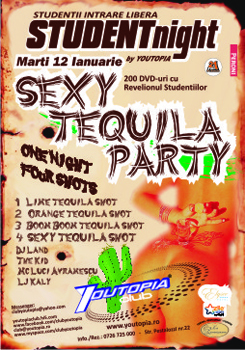 Marti, 12 ianuarie 2010, in Club Youtopia din Timisoara are loc Sexy Tequila Party.