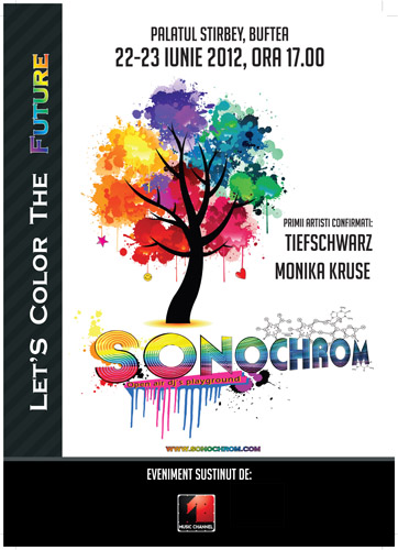 În perioada 22-23 iunie, de la ora 17:00, la Palatul Ştirbey din Buftea are loc Sonochrom Festival. Line-up-ul festivalului va fi alcătuit din DJi de renume, precum Monika Kruse şi Tiefscwarz.
