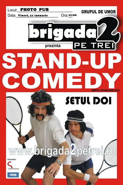 Vineri, 21 ianuarie 2011, ora 21:00, la Photo Pub din Baia Mare are loc show-ul de stand-up comedy cu Brigada 2 pe trei.