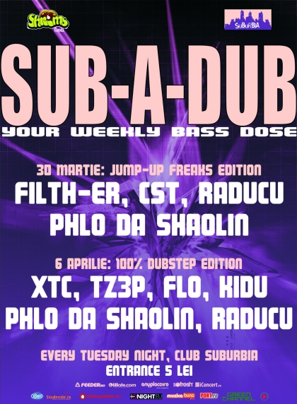 Marţi, 30 martie şi 6 aprilie 2010, ora 22:00, clubul Suburbia din Bucureşti ne invită la petrecerea Sub a dub!