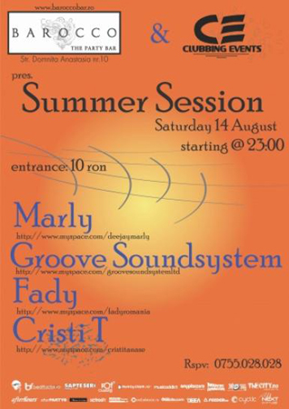 Sâmbătă, 14 august 2010, ora 23:00, Barocco Bar din Bucureşti ne invită la petrecerea „Summer Session„.