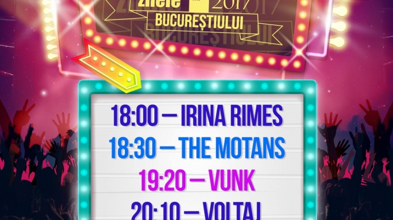 Duminică, 17 septembrie 2017, de la ora 18:00, seria evenimentelor din cadrul Zilelor Bucureştiului continuă cu un concert maraton. Delia & Band, Voltaj, Holograf, Trupa Vunk, The Motans şi Irina Rimes vor susţine concerte în Piaţa Constituției din Capitală.