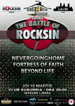 Joi, 18 martie 2010, ora 20:00, în Club Suburbia din Bucureşti are loc concertul concurs „The Battle Of Rocksin„, etapa III.
