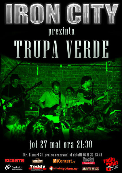 Joi, 27 mai 2010, ora 21:30, Trupa Verde în clubul Iron City din Bucureşti.