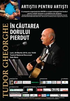 Luni, 29 martie 2010, ora 19:00, la Teatrul National Bucureşti, Tudor Gheorghe va susţine spectacolul În căutarea dorului pierdut.