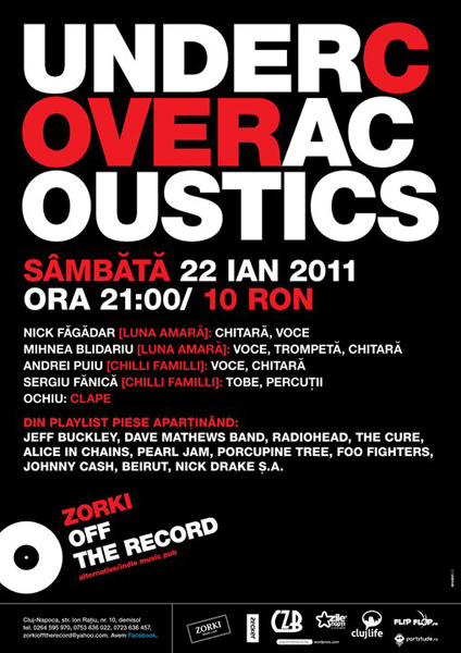 Sâmbătă, 22 ianuarie 2011, ora 21:00, la Zorki Off The Record din Cluj-Napoca are loc concertul „Under Cover Acoustics” cu Nick & Mihnea de la trupa Luna Amară, Andrei Puiu & Sergiu Fanica de la trupa Chilli Familli şi Ochiu.