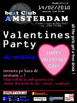 Duminică, 14 februarie 2010, cu ocazia Sfântului Valentin, Amsterdam beat Club din Craiova organizează „Valentines Party„.