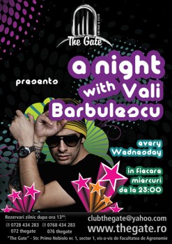 Miercuri, 10, 17 şi 24 februarie 2010, ora 23:00, Vali Bărbulescu este prezent la platane în Club The Gate din Bucureşti.