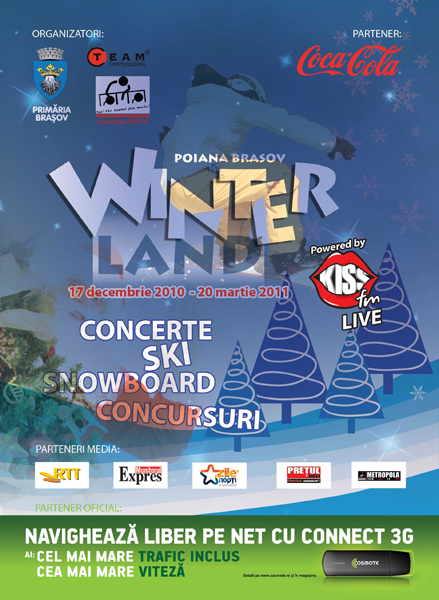 Între 17 decembrie 2010 şi 20 martie 2011, în fiecare week-end suntem invitaţi pe pârtia Bradu din Poiana Braşov la Winterland.